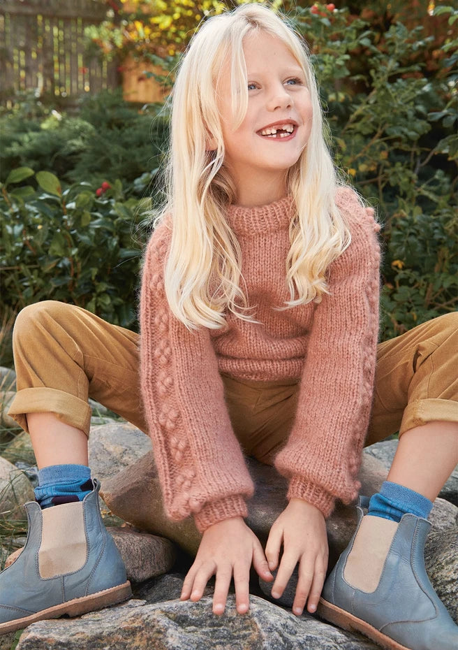 I denne kolleksjonen finner du gode basisplagg til barnehage og skolebarn. Alt er strikket ovenfra og ned, dermed kan du strikke ermer og bol akkurat så lang du vil, slik at det passer ditt barn best. Så lenge du mestrer rett og vrang kan du få til utrolig mye, det er bare å sette i gang. Vi håper du finner mye fristende som holder barna gode og varme i denne kolleksjonen. God strikk!