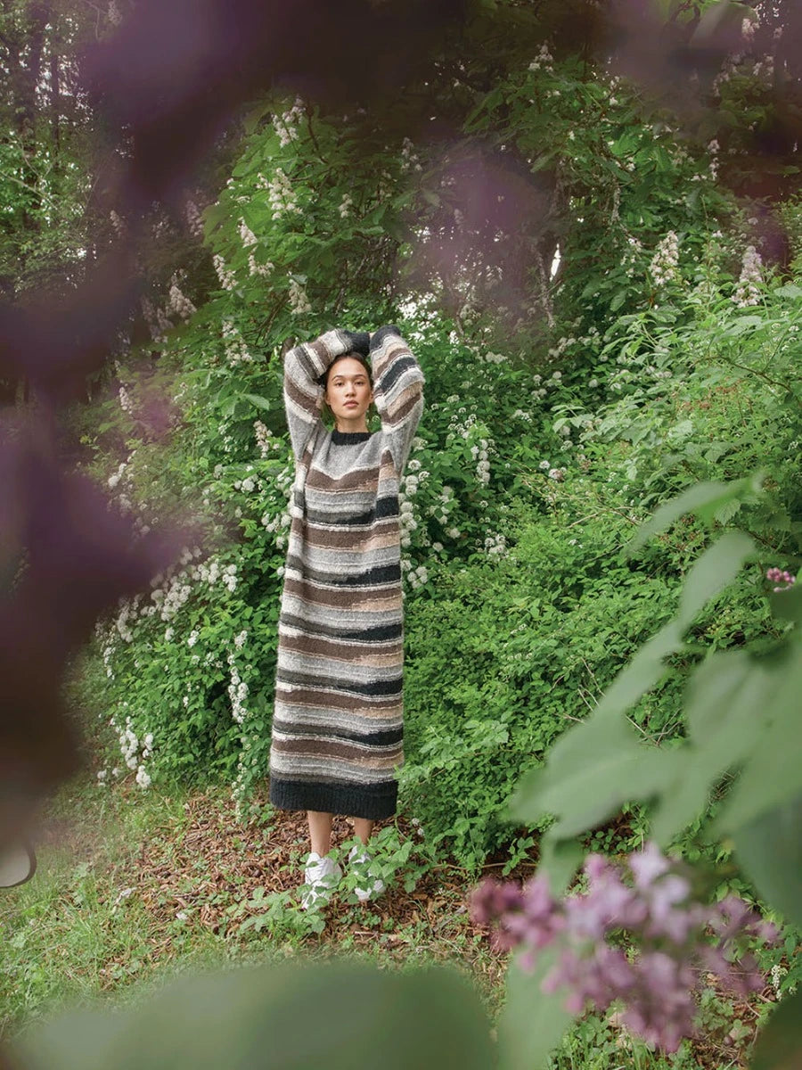 Det meste er strikket ovenfra og ned, men noe er også strikket nedenfra. Marley genser, kommer i to ulike tykkelser og strikkefastheter, det samme gjør Must Have Beanie. Velg det uttrykket du foretrekker. Brooklyn Weekend Genser blir sesongens kosegenser, lett å strikke, også for deg som ikke er så erfaren. Malou bluse og kjole, har en nydelig velkonstruert, delikat halskonstruksjon og sadelskulder. Snitt og detaljer er inspirert av historiske undertrøyer og underkjoler. Juniper kjole er like tøff til joggesko med bare bein, som med bukse under. Den gir mulighet for uendelige fargekombinasjoner som vil endre uttrykket totalt fra den du ser i vår kolleksjon. Iben genseren kan strikkes ovenfra og nedenfra. Strikker du nedenfra er det fellingene som danner linjene i bærestykket, strikker du ovenfra er det økningene som danner linjene. Felles for kolleksjonen er at den består av godt konstruerte plagg med lang varighet, der alt er enkelt å style opp og ned. Her er noe for deg som ønsker en utfordring, og for deg som ikke er så erfaren. Håper du blir inspirert. God strikk!