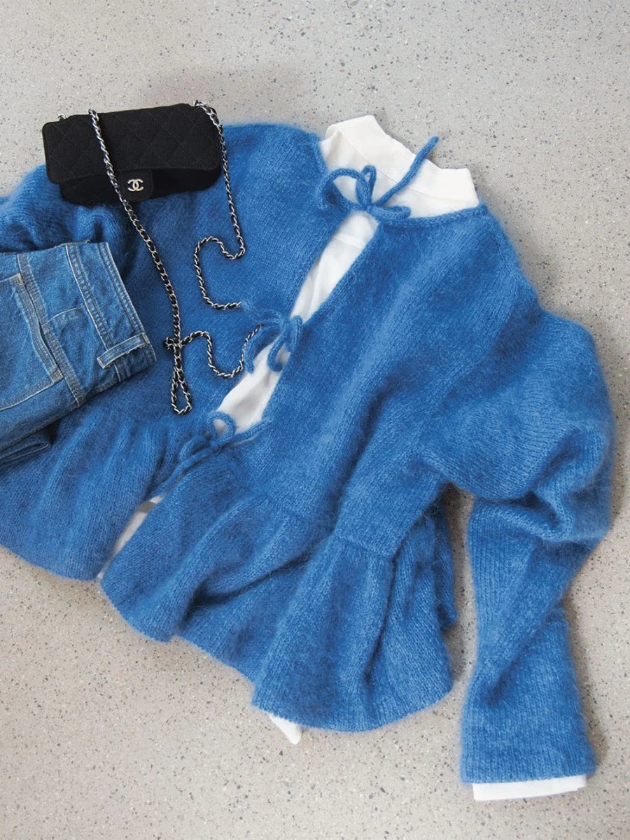 Det mest spesielle designet denne gangen er Vienna bluse. Den har en nydelig konstruksjon med sadelskulder, peplum, bånd og knyting. Det beste av alt, er at den kan brukes med knytingen både fremme og i ryggen. Oxford Cardigan har fått navnet sitt etter Englands eldste universitet. Vi ser for oss at denne kan være god å ha på ærverdige gamle og kalde lesesaler. Varm og god er også Zoe Zipper Sweater Dress, lun og myk å krype inn på kjølige dager. Like fin som kjole, som med bukse under. Hadley genser kan fort bli en favoritt, spesielt når den er strikket i det nye tweed tilskuddet i Peer Gynt, Tutti Frutti. Brook cardigan finner du oppskrift på både i Børstet alpakka, Sunday og Kos, sammen med følgetråd. Lacey scarf kommer i tre størrelser. Det minste er for eksempel fint til å knyte rundt håret. På bildene i katalogen ser du den midterste størrelsen. Abby genser har european shoulder og en oversized passform med splitt i siden. Passer mange ulike kroppstyper. River genser har en smal passform, strikk en større størrelse hvis du ønsker mer bevegelsvidde. Loui genser er den perfekte basic patentgenseren. Her har du også mulighet til en mini match, ettersom den finnes til baby også. I vårens Mykt til barn kolleksjon finner du den fra 2 -12 år. Fine River cardigan har fått statementfarge og perleknapper. Velger du en roligere farge og nedtonede knapper, får den et helt annet klassisk uttrykk. Vi anbefaler kolleksjonen på det varmeste, god strikk!
