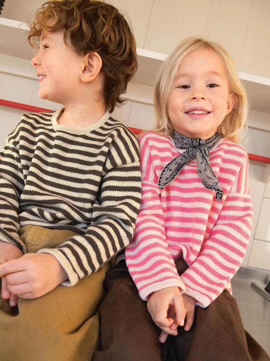 Genseren strikkes ovenfra og ned i stripemønster med Sunday.
