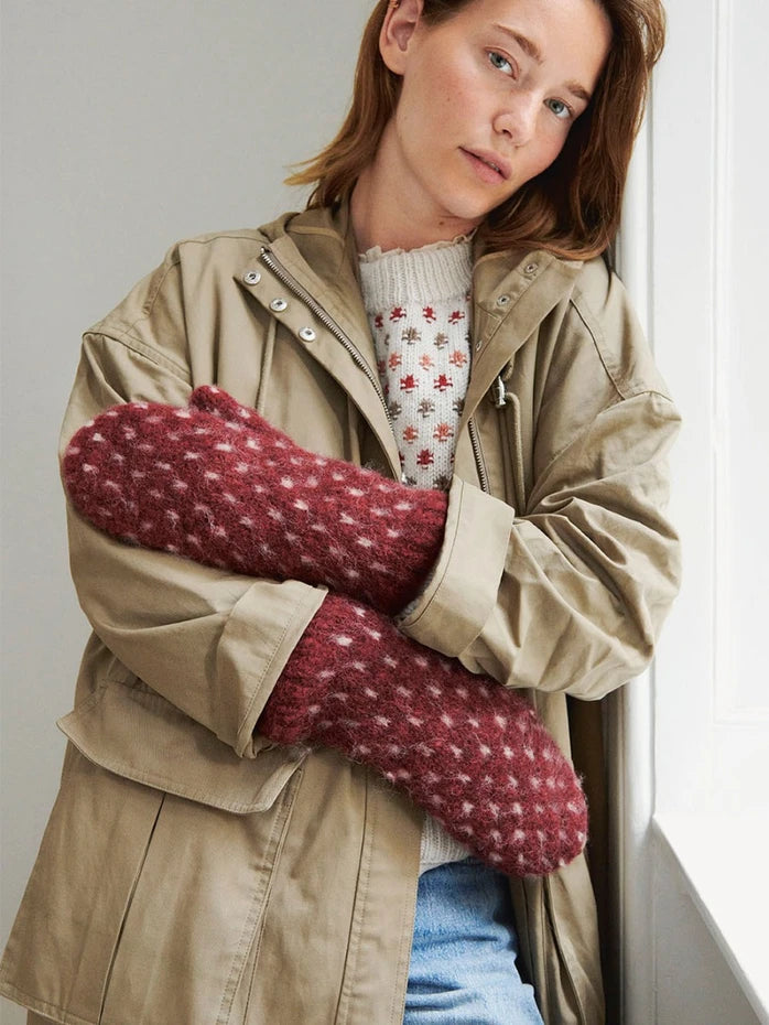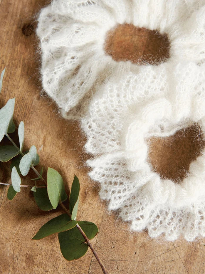 Hva med å strikke Christmas slippers til hele familien? Juliette bag kan du hekle i tre størrelser og den kan brukes som toalettmappe, prosjektbag eller til andre nødvendigheter. Fleur scrunchie og lace scrunchie er like fine til både små og store. Joel votter kan også strikkes til hele familien, tovede votter er varmt og godt å ha på kalde dager. Fleur de Lis genser kan lages i mange fargevarianter, her er det mulighet for mamma og mini match. Dekorér Christmas candle og Petite christmas candle slik du har lyst, morsomt, søtt og helt personlig. God førjulstid og god strikk!