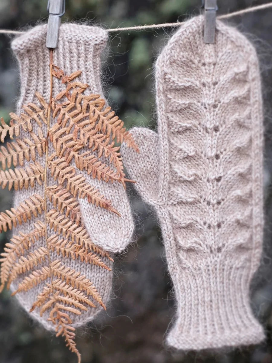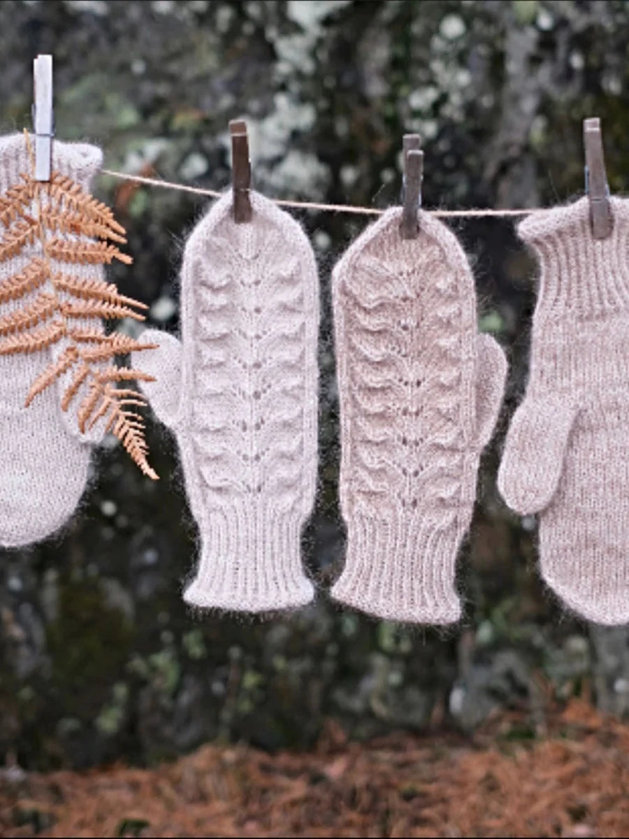 BregneVottene strikkes fra håndleddet og frem i TYNN SILK MOHAIR og TYNN PEER GYNT.