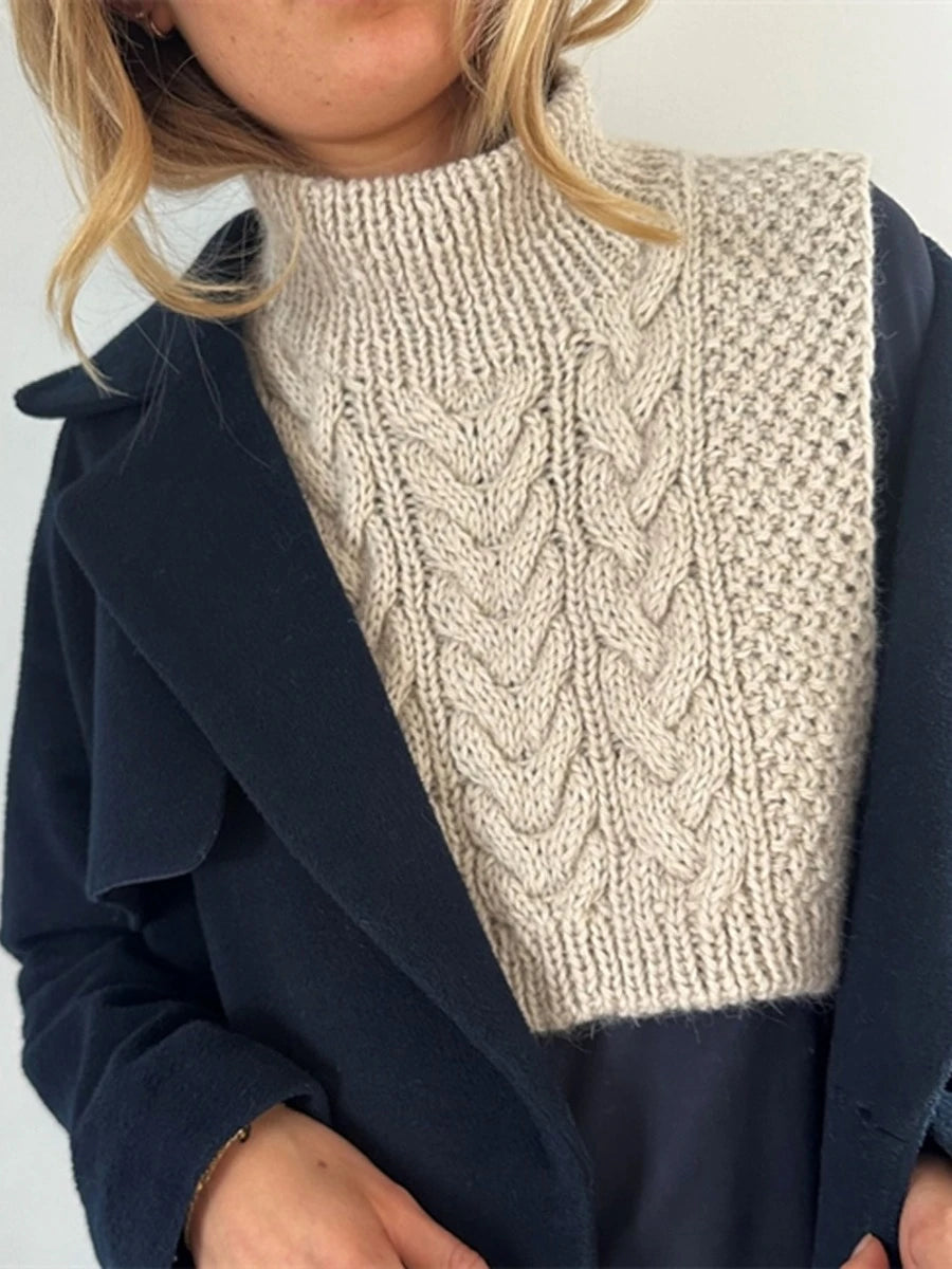 Siri Neck strikkes i ett stykke. Begynn nederst på forstykket og strikk til begynnelsen av halsutringningen. Herfra strikkes hver skulder for seg. Legg deretter opp masker mellom skulderdelene og strikk bakstykket. Til slutt strikkes halskanten i ribb. Alle mønsterpinner er vist i diagrammet.